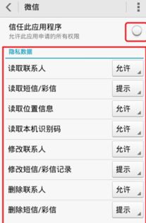 6. 调整权限:在这里,你可以看到这个应用所拥有的所有权限。如果你觉得某个权限有点过分,可以随时关闭它。就像给手机穿上了一层保护衣,防止它泄露你的隐私。