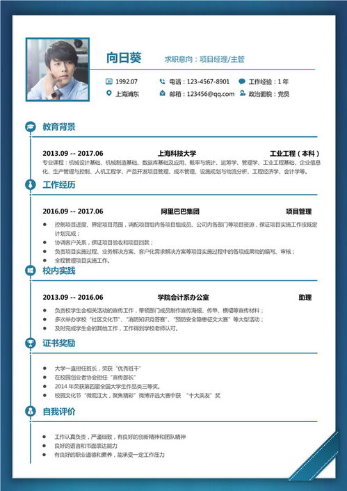 首先,你得有个让人过目难忘的名字。在简历的顶部,用醒目的字体写下你的姓名,下面紧接着是你的联系方式,包括电话和邮箱。记住,电话号码要确保畅通,邮箱也要定期检查,以免错过重要的面试邀请。