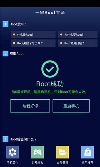 3. 安装第三方应用:有些应用需要root权限才能正常使用,比如一些系统优化工具、文件管理器等。