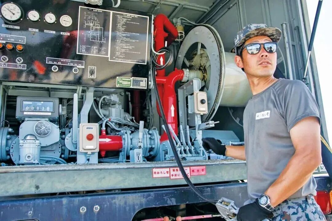 资料图:日本自卫队人员在为美军F-35战斗机加油(来源:中国国防报)
