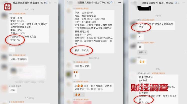 报价动辄上万元,宣称由专业老师代写的高品质文章论文,实际上在群里仅仅标价几百元。本应是检验学习成果、知识水平,需要查阅各种资料完成的文章论文,正在写手群里以极其低廉的价格出售。