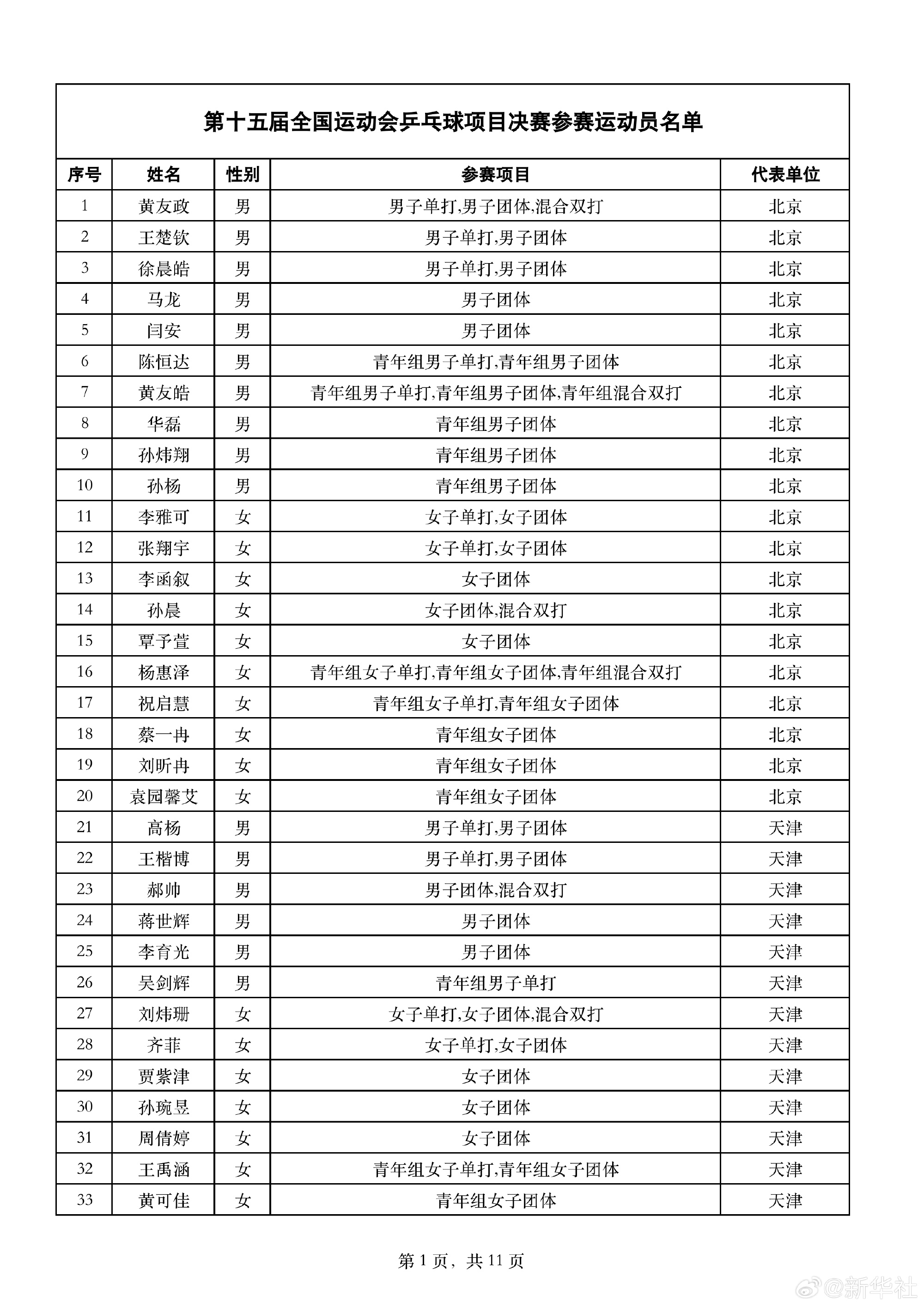 中国乒乓球协会官网发布关于公示第十五届全国运动会乒乓球项目决赛参赛运动员名单的通知,马龙、孙颖莎、樊振东、王楚钦、王曼昱、陈幸同、蒯曼、王艺迪、林诗栋、梁靖昆、林高远、向鹏、周启豪等运动员的报项已出炉。第十五届全国运动会乒乓球项目决赛将于11月7日至20日在澳门举办,一起为所有运动员加油!