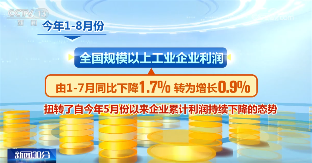 有了“稳”的基础,在众多数据中,我们的观察重点还会聚焦一些特别的数字。以工业企业利润为例,今年1—8月份,全国规模以上工业企业利润由1—7月同比下降1.7%转为增长0.9%,扭转了自今年5月份以来企业累计利润持续下降的态势。