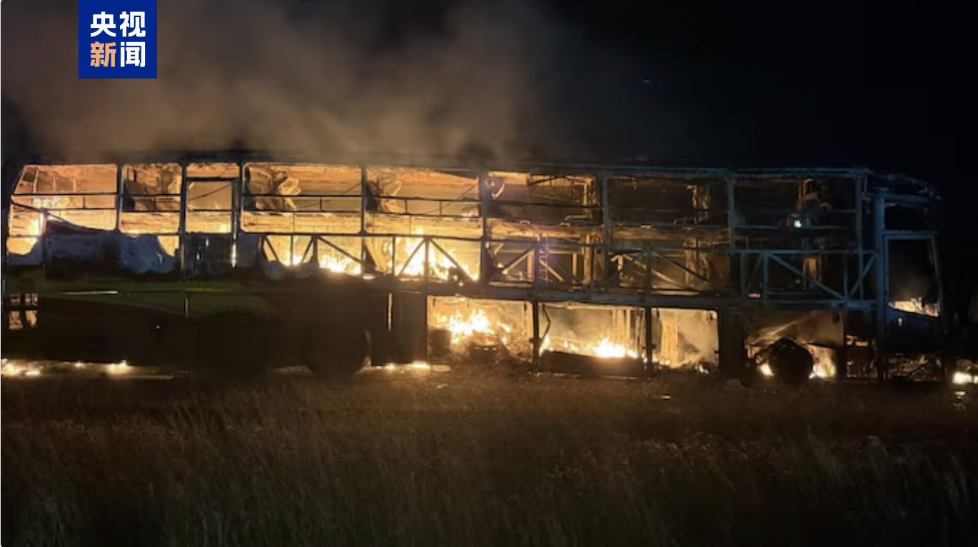 据总台记者消息,当地时间24日,印度安得拉邦发生两车相撞起火事件,造成人员伤亡。