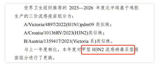 疫苗组分会根据全球流感病毒的流行情况每年更新,以确保其保护效果。2025—2026年度北半球主流三价疫苗包含以下三种病毒株的类似株: