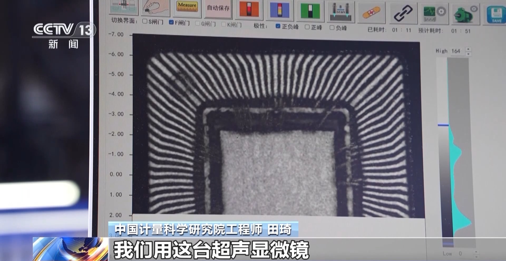 中国计量科学研究院工程师 田琦:我们用这台超声显微镜给芯片做类似于B超的检测,我们可以发现芯片的问题,从而帮助集成电路优化工艺,助力集成电路的发展。