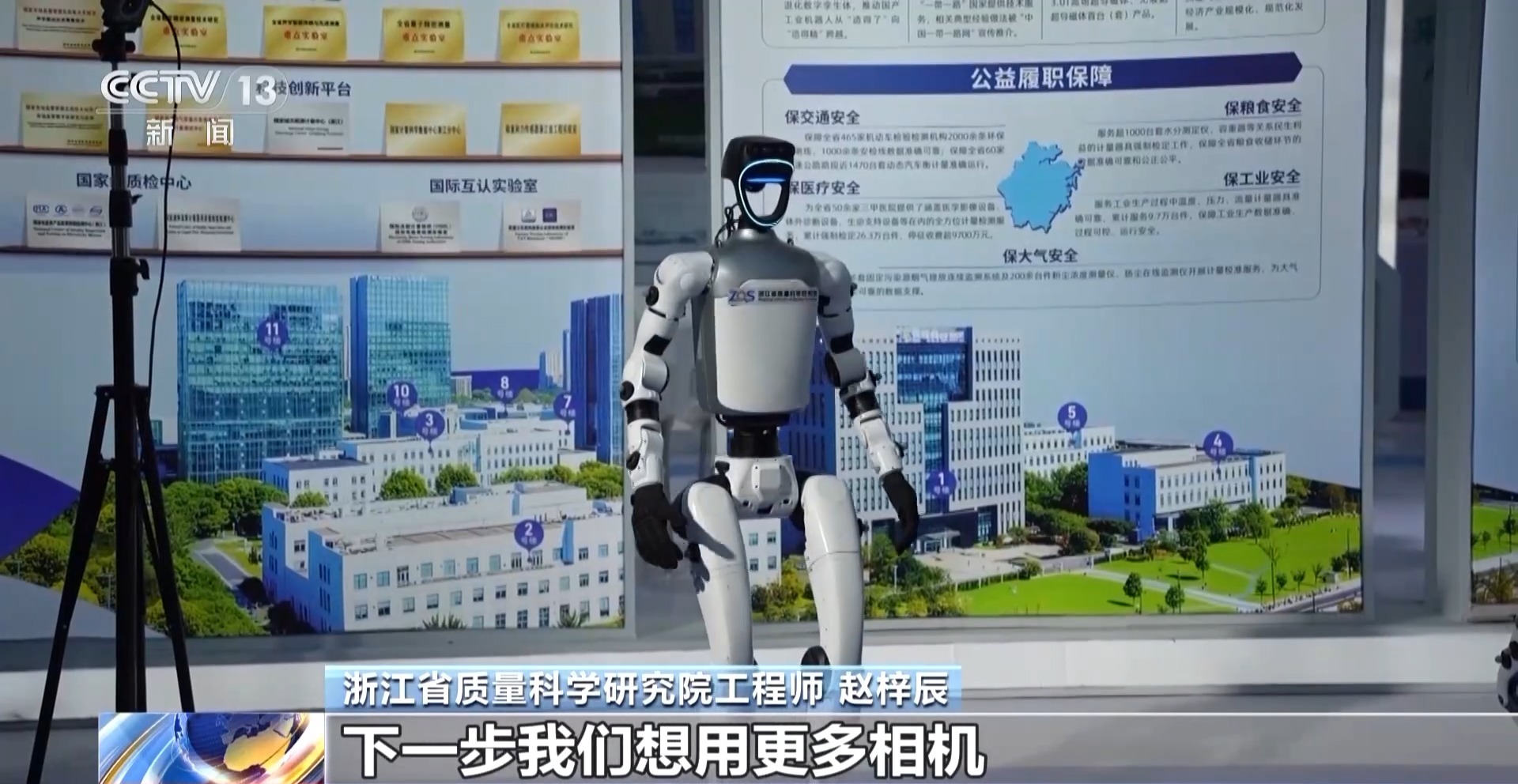 浙江省质量科学研究院工程师 赵梓辰:我们这套系统测试精度可以达到亚毫米左右,下一步我们想用更多相机和更强大数据处理的一些算法,让它能够更快更准地对机器人的计量特性、指标特性完成测试。