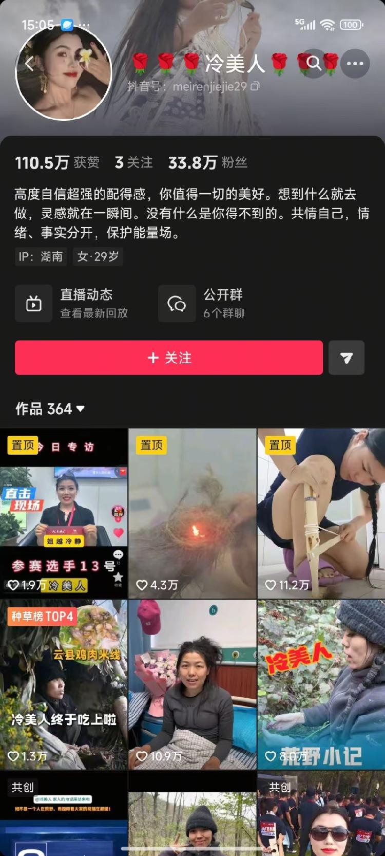 “冷美人”的短视频社交账号粉丝超过33万。 截图