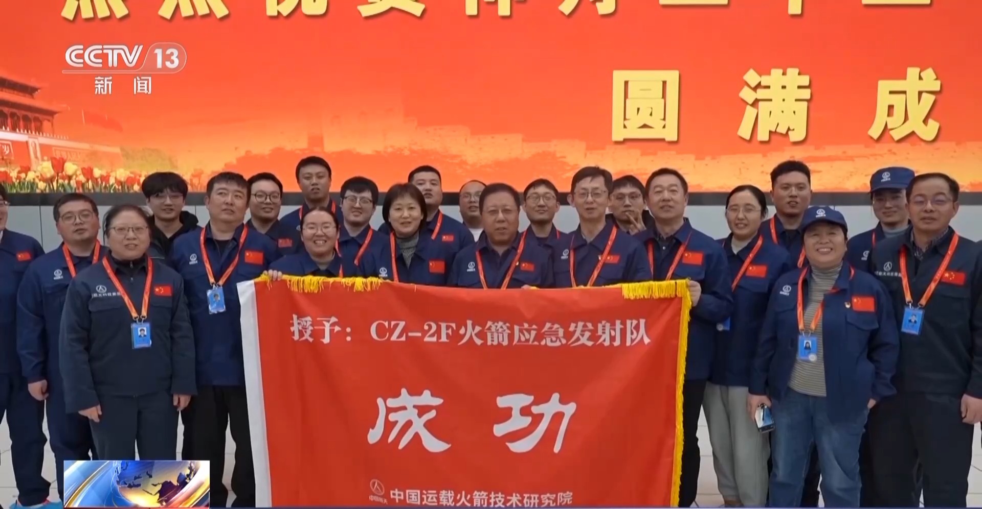 总台央视记者 崔霞:现场响起了热烈的掌声,我们的长征二号F火箭把神舟二十二号飞船顺利送到了预定轨道,这是中国载人航天工程首次应急发射,取得圆满成功。