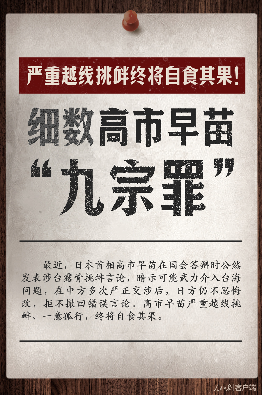 严重越线挑衅终将自食其果!细数高市早苗“九宗罪”