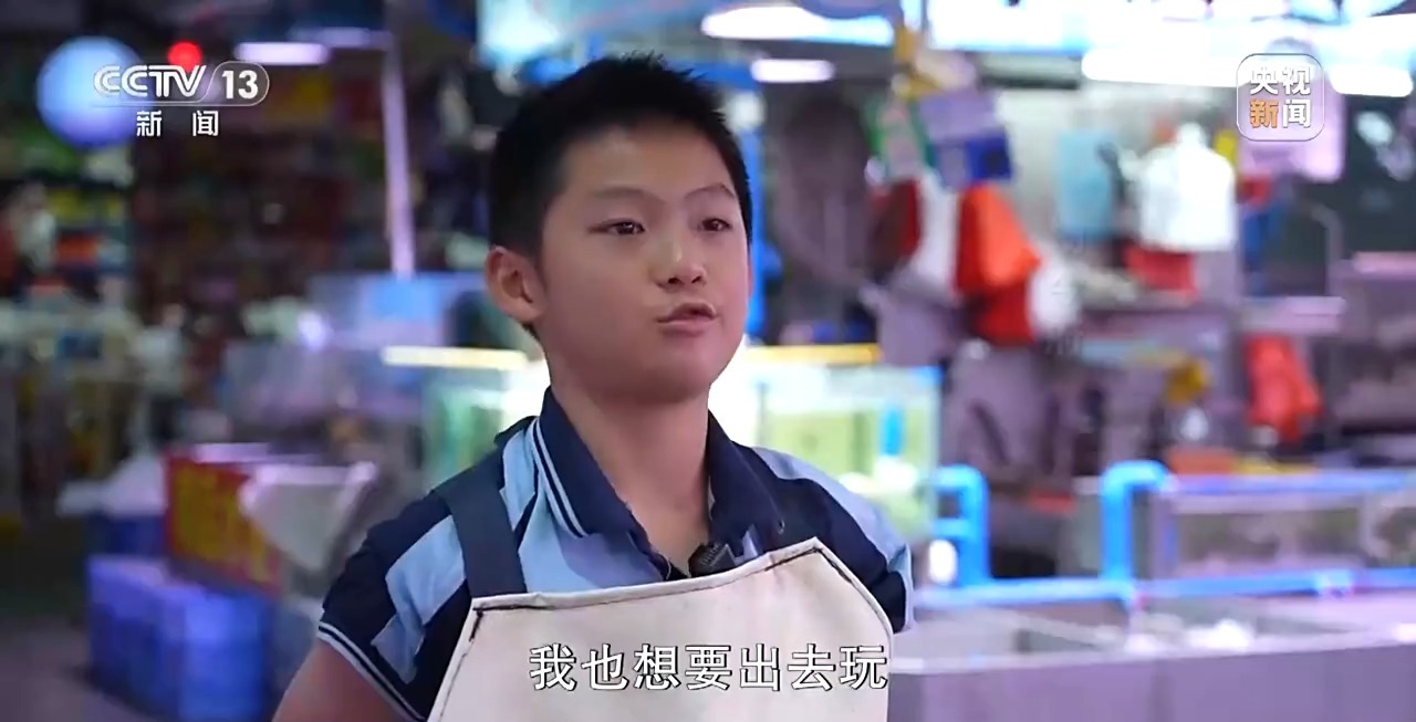 杨今府:我也想要出去玩,可是爸爸妈妈没有空,那我就只能在档口里面跟他们一起玩呗。我想要去海洋馆里面看一下比我卖的鱼还要更大的这些鱼,比如鲨鱼,鲸鱼等等。