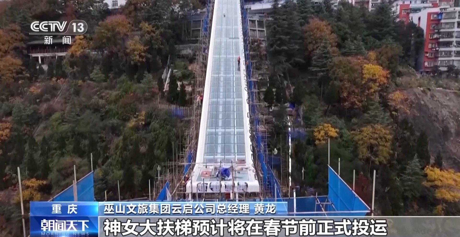 巫山县文旅集团云启公司总经理 黄龙:神女大扶梯预计将在春节前正式投运,我们冬季滑雪场项目也进入紧张施工中,预计明年可以投入使用。