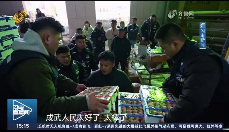 我这车货是从安徽拉往广州,那天毕竟下大雪,路上耽误点时间,那边拒收了,要不是他们帮我销售,我这批货都坏到我自己手里,帮我们挽回了20多万块的损失,感谢成武人民,成武人民太好了,太棒了。
