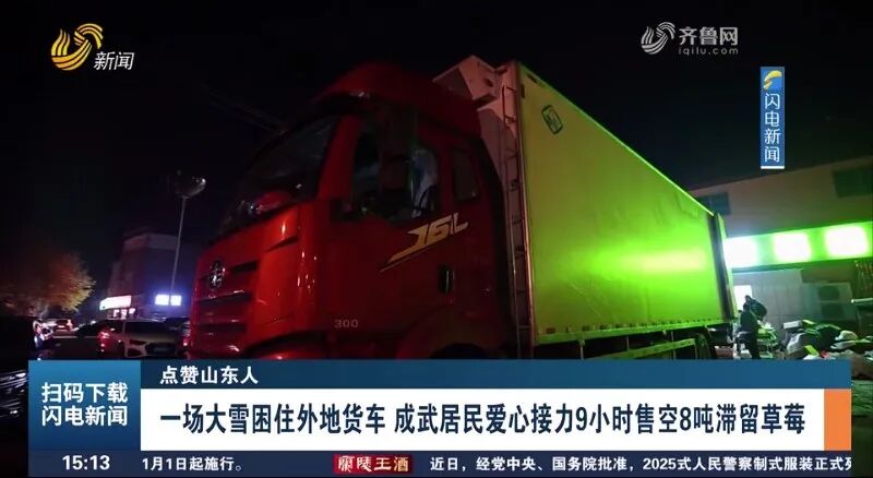 前几天,因寒潮天气,一辆满载草莓的货车,从安徽发往广东,因降雪路途受阻,错过交付时间。无奈之下,司机辗转将车辆开往成武县寻求帮助。