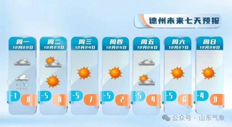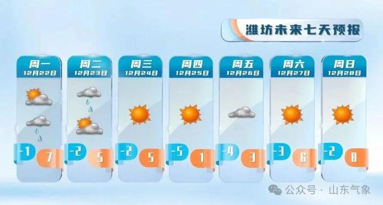 此外,23日白天冷空气开始自北向南影响我省,气温明显下降,大部地区过程降温幅度在4~6℃,25日早晨气温降至最低,鲁西北、鲁中山区和半岛内陆地区-8~-6℃,其他地区-4~-2℃。
