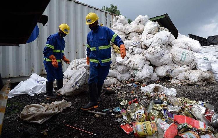 △工人们装载从珠峰收集到的垃圾(资料图)
