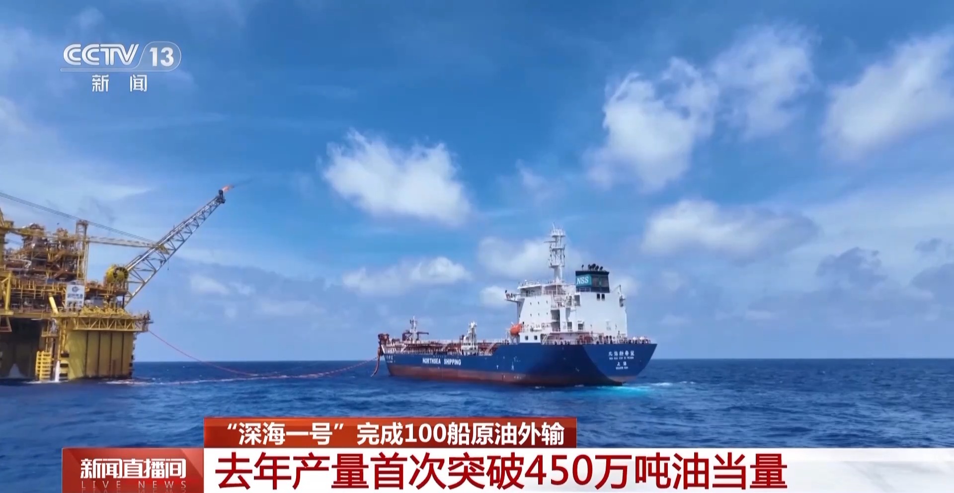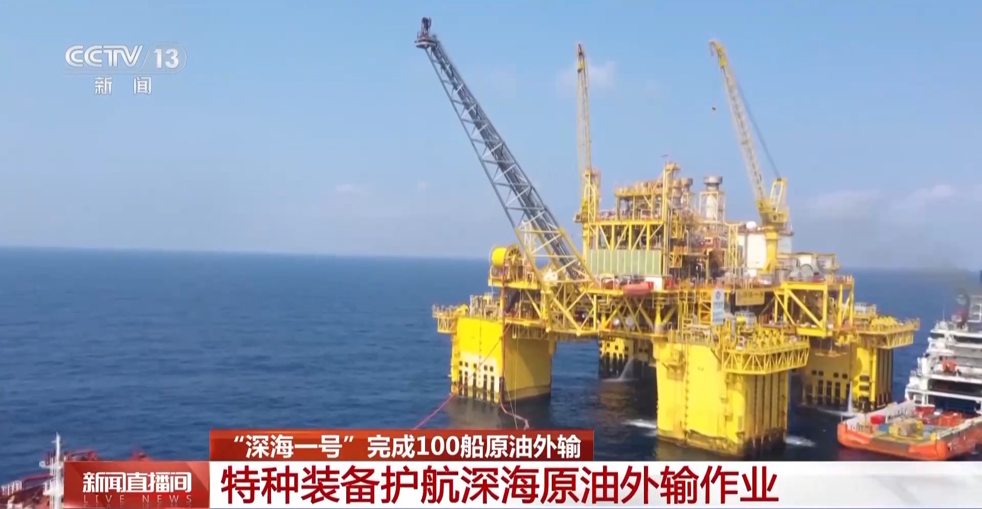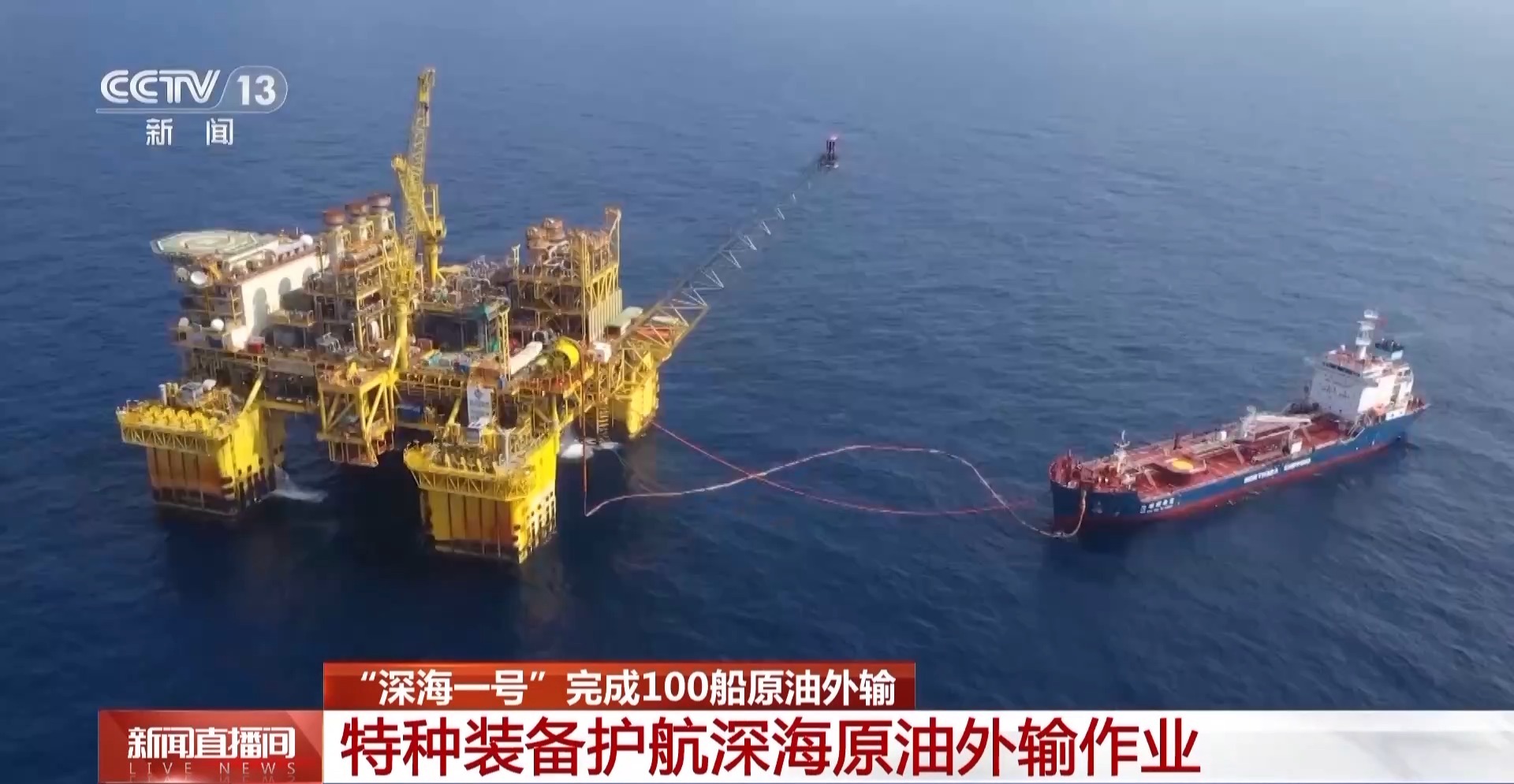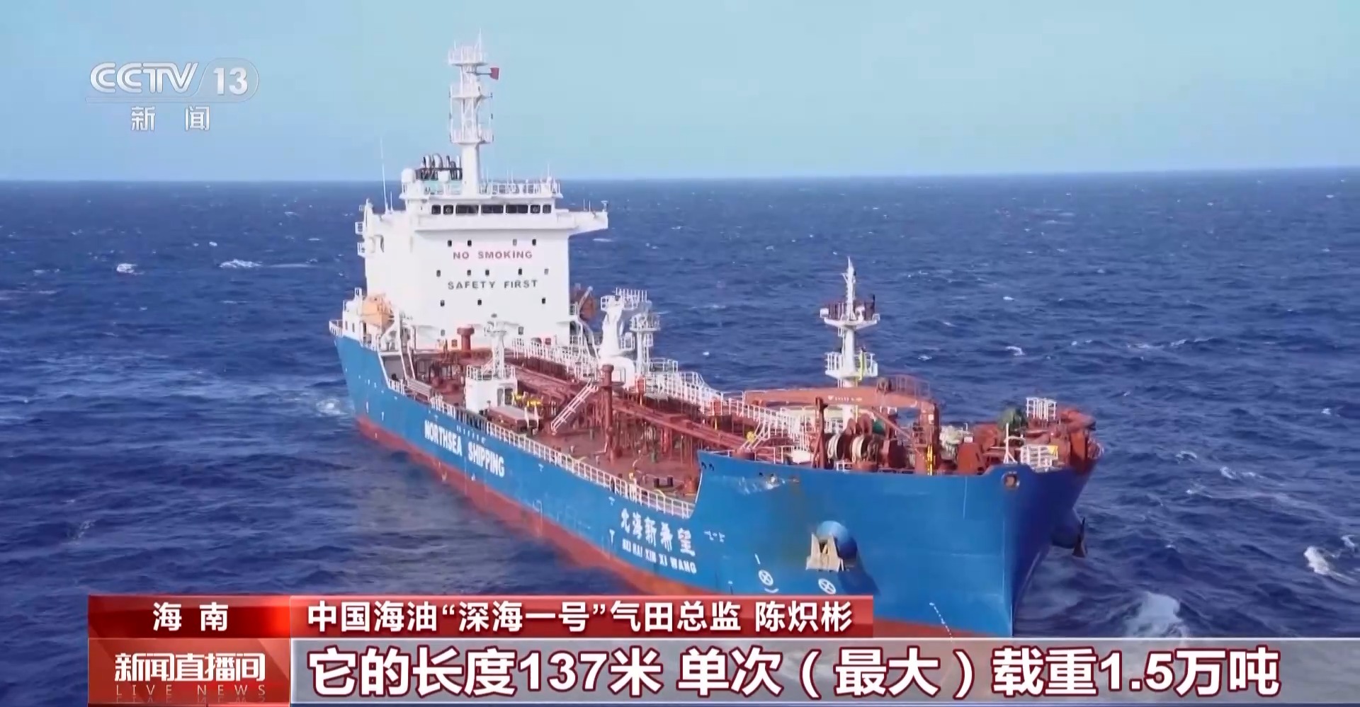 中国海油“深海一号”气田总监 陈炽彬:这是“深海一号”的凝析油外输作业的一个油轮,它是国内首艘DP动力定位穿梭油轮。它的长度137米,单次最大载重1.5万吨,可以在复杂的海况下进行作业,通过实时动力定位系统,与“深海一号”保持一个安全的距离,保证原油外输过程的安全。
