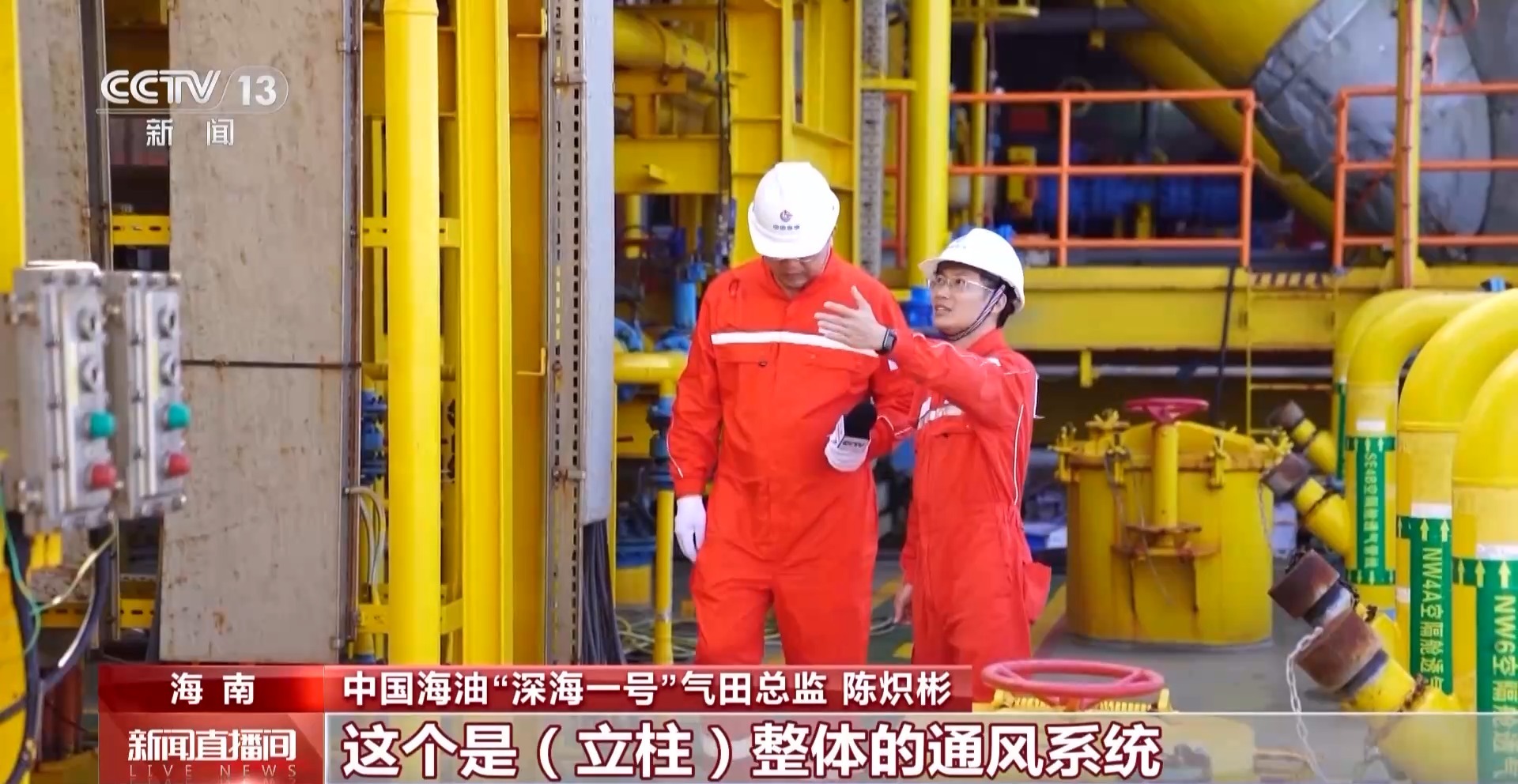 中国海油“深海一号”气田总监 陈炽彬:这里是“深海一号”的二号立柱,这个是立柱整体的通风系统。