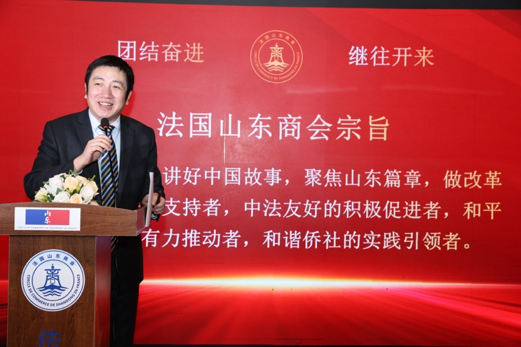 他号召全体会员坚定文化自信,胸怀家国情怀,共同践行商会宗旨——“致力于讲好中国故事,聚焦山东篇章,做改革开放的坚定支持者,中法友好的积极促进者,和平统一的有力推动者,和谐侨社的实践引领者”。