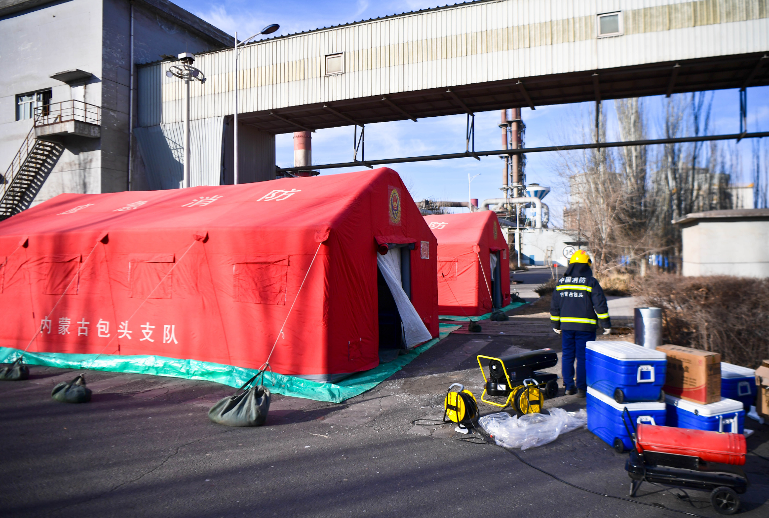 图为1月19日下午,厂区内救援队伍帐篷。记者 吴勇 摄