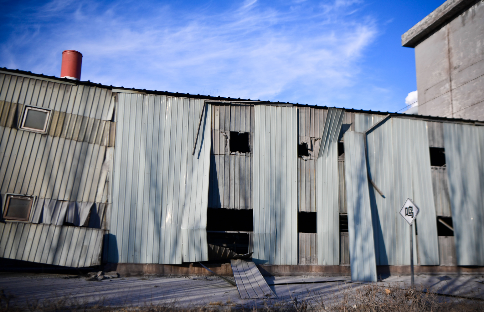 图为1月19日下午,厂区内部分厂房结构变形。记者 张枨 摄