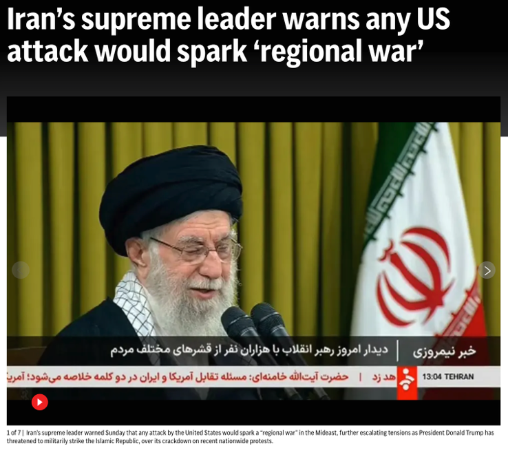 △美联社报道,伊朗最高领袖哈梅内伊警告,美国的任何攻击都将在中东引发地区战争。