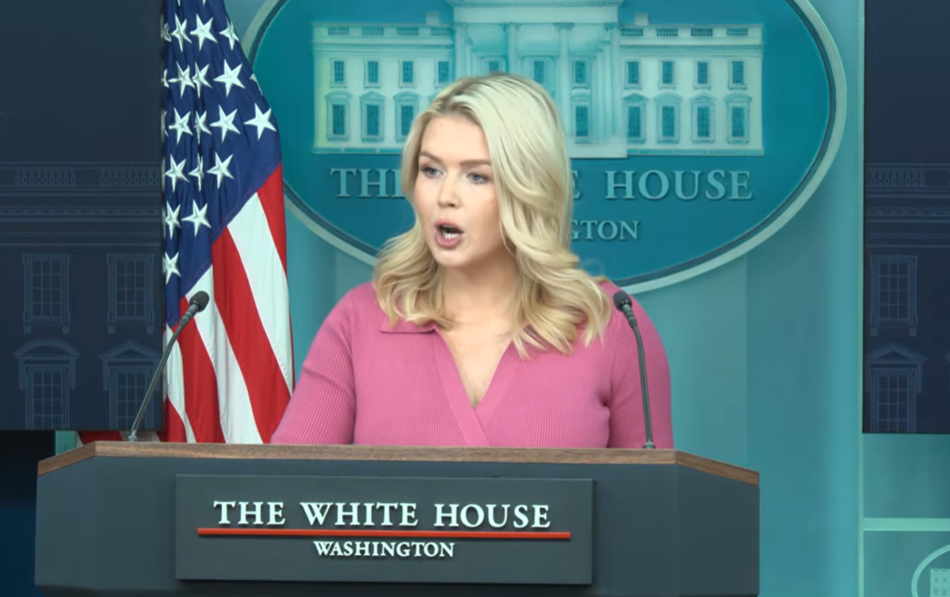 当地时间2月5日,美国白宫新闻秘书莱维特在简报会上