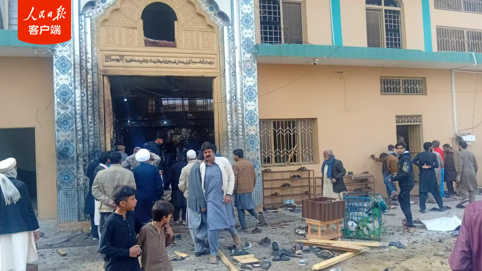 伊斯兰堡清真寺爆炸现场。事发现场民众供图