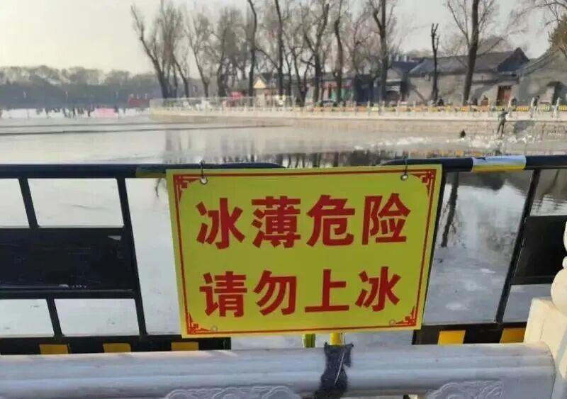 谨遵提醒。如看到“冰薄危险、请勿上冰”的警示牌,严禁捕鱼、钓鱼,冰上行走、玩耍。