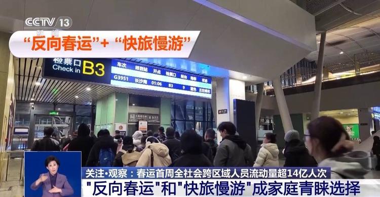 此外,今年春运期间“反向春运”加“快旅慢游”成为不少家庭的选择。快旅慢游,就是依托快速交通网络,通过缩短旅途时间以延长景区停留时长的旅游模式。