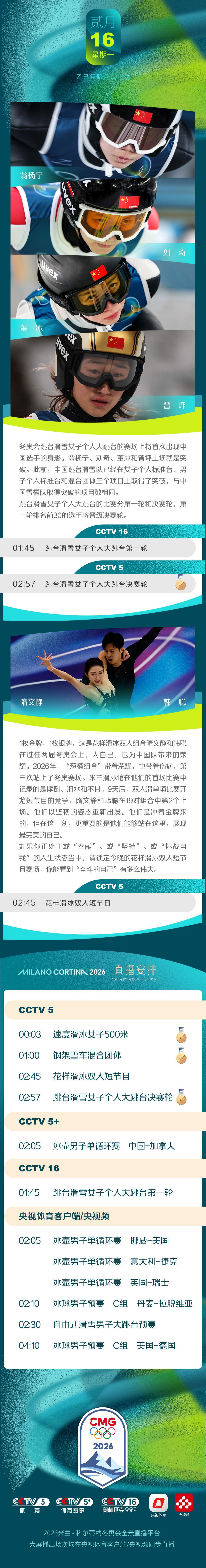 米兰-科尔蒂纳冬奥会开幕后第九比赛日,单板滑雪坡障预赛提前,花滑双人短节目“隋韩”登场。