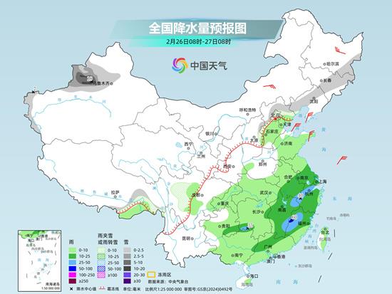 今天(2月24日),南方雨势将减弱,同时多地气温继续下降,明天起南方又将进入多雨模式。在北方,今明天气温将明显回升,但月底前气温波动频繁,需注意调整衣物。