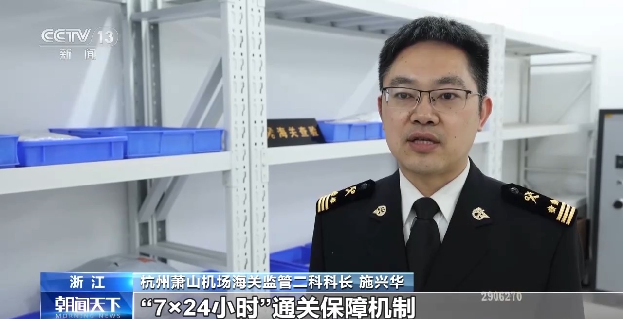 杭州萧山机场海关监管二科科长 施兴华:我们为企业解答退货业务办理过程中单证申报等问题,同时依托杭州空港口岸“7×24小时”通关保障机制,利用数字化监管手段,保障全链条的可追溯性,在确保流程合规的前提下,让政策红利转化为企业竞争力。