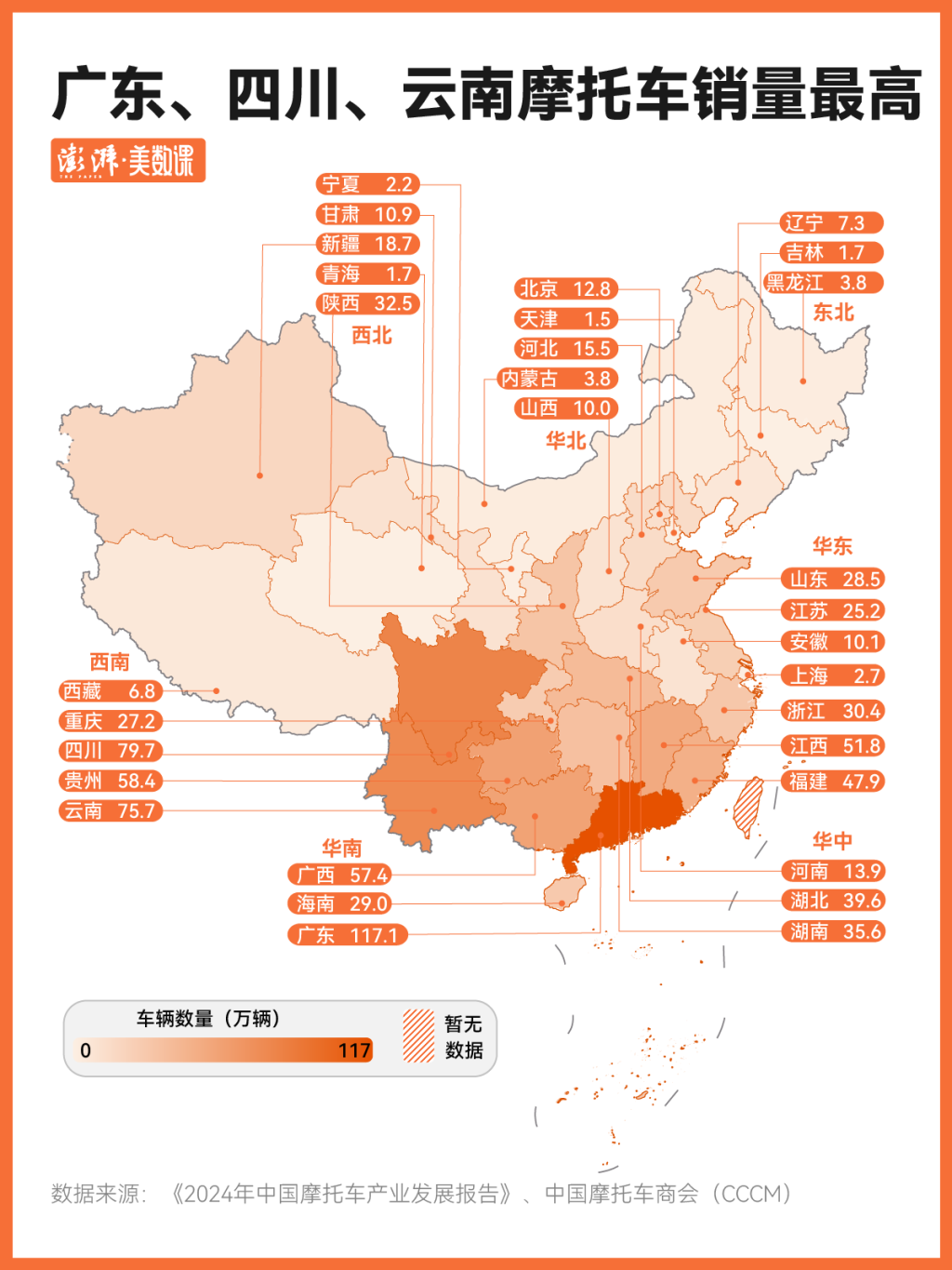 根据《2024年中国摩托车产业发展报告》中国的摩托车市场主要集中在东部经济发达省份、西南多山省份以及中西部政策宽松地区。虽然我国摩托车出口量大,但存在高端产品不足、大排量摩托车研发稍显滞后、品牌溢价能力弱等短板。