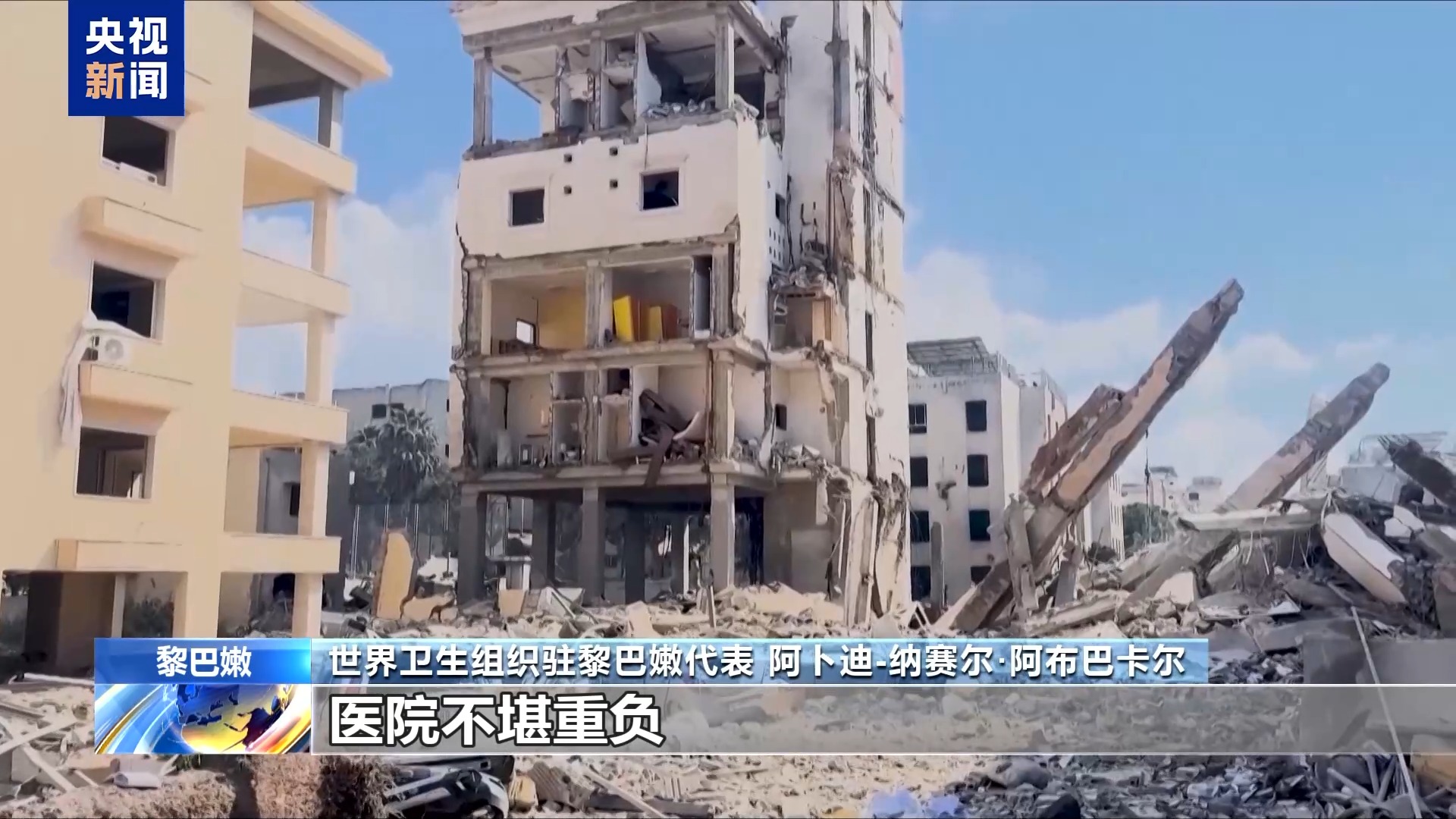 世界卫生组织驻黎巴嫩代表 阿卜迪-纳赛尔·阿布巴卡尔:黎卫生系统正处于极端和前所未有的压力之下。医院不堪重负,医护人员不堪重负,一些处理创伤的医疗用品短缺。如果这种情况继续下去,可能在几天内就会用完。总体来说,可能还能支持一到两周的时间。但是有些用品可能已经短缺了,所以我们确实需要紧急医疗资源,同时也要想办法把这些资源送到黎巴嫩。