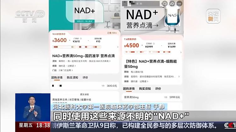 江苏省人民医院药学部药师 余敏:目前国内主要成分是“NAD+”药准字号药品的一个通用名是注射用辅酶Ⅰ,有严格的药品适应证,说明书包括做的药理相关实验,都没有提及有抗衰老的作用,本身是作用在体内参与能量代谢的。这个药品应该是严格参照诊疗规范和药品说明书来开具处方,经过药师审核之后由注册护士使用,对于一些非治疗需要的健康人群使用该药是不合适的。