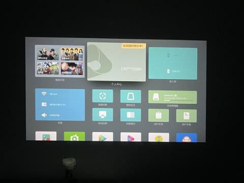 系统是FengOS,整体操作下来也是比较流畅的,配备的资源也很丰富。同时这款投影系统内集成了小明同学语音控制,以及米家智能系统的控制,相对来说功能比较完善。