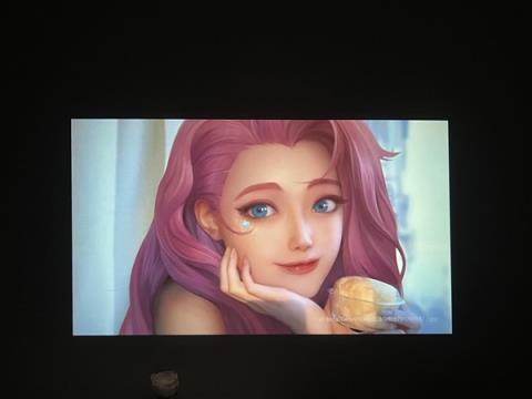 这款投影的外观算是比较有特点的,有白绿蓝三种颜色可供选择。亮度600ANSI流明,画面也是很清晰的,色彩可能会偏冷调一些,但整体画面看着还是很舒服的。